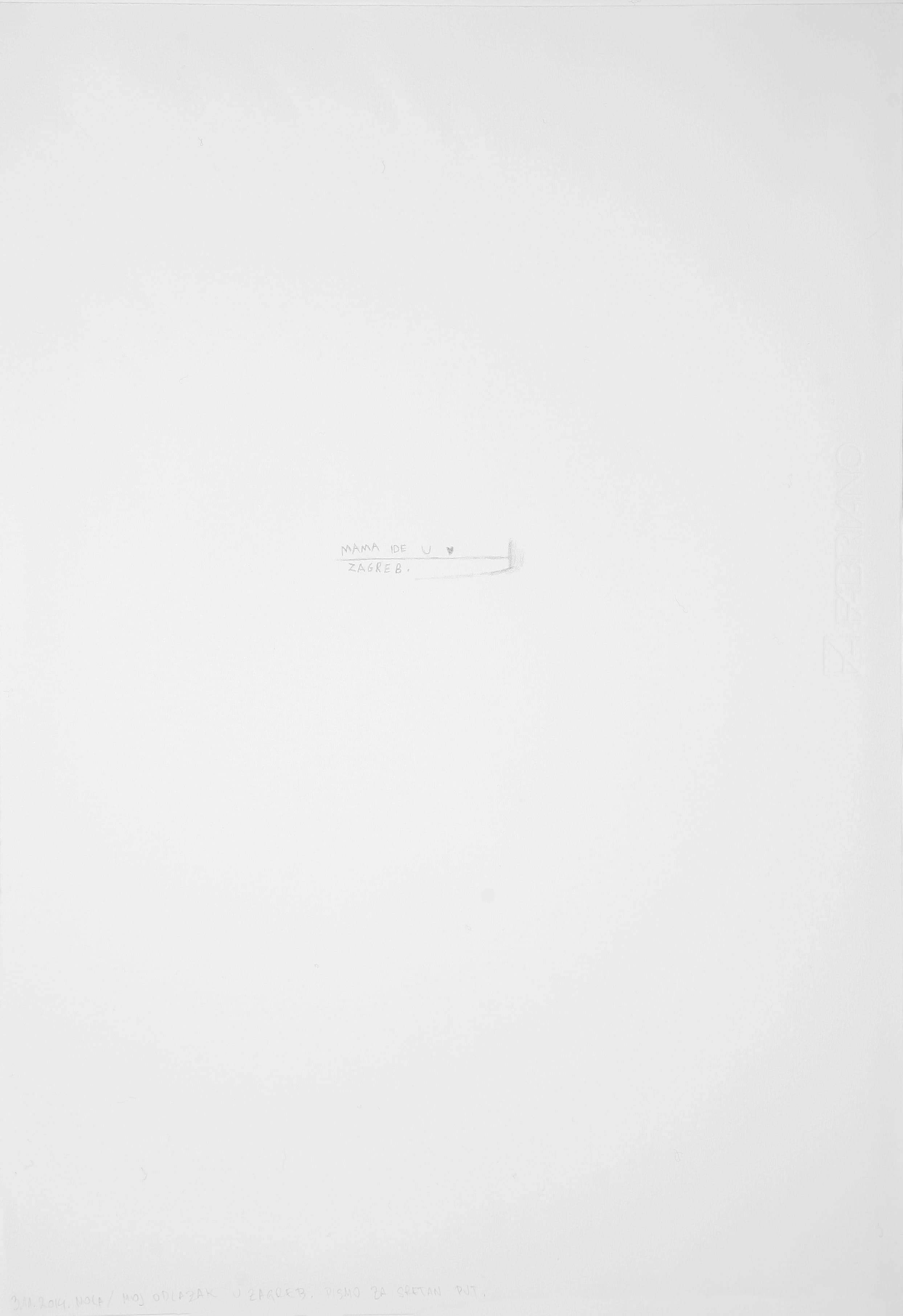 Mom is going to Zagreb – Archive of Encounters (2012 – 2014) is a work in process which I have started to shape after the birth of my second child, my son Toma. This work is inspired by my thinking about the experience and significance of the encounter with my children, Nola and Toma, and material traces which I have been collecting during the past four years with the purpose of archiving these moments. The title Mom is going to Zagreb is taken from a tiny letter which Nola had wrote to me before my last trip to Zagreb. The letter holds only this one sentence and a tiny heart.