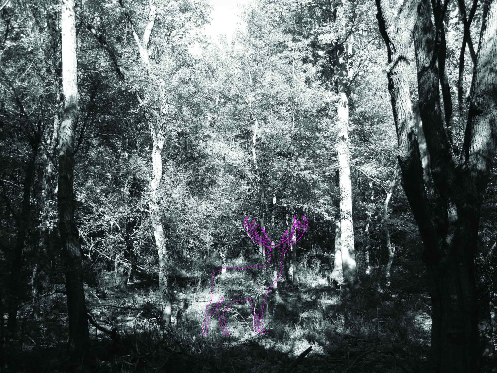 Ciklus Imaginarni bestijarij potaknut je komunikacijom i dijalogom s kćeri Nolom. Taj je rad vizualna interpretacija nastala kao rezultat istraživanja Noline svijest o sebi, njezina kognitivnog razvoja, razvoja percepcije, opažanja i njezine spoznaje. U svakodnevnim dijalozima Nola mi je često postavljala pitanja koja su i meni kao majci predstavljala izazov, poticala me na preispitivanje, kako djetetu objasniti i približiti svijet i okruženje o kojem i sama moram promisliti. Istraživanje sam započela u razdoblju Noline razvojne faze koju je francuski filozof Jacques Lacan u znanom eseju Stadij zrcala (1949) nazvao imaginarnom. Imaginarno prema Lacanu proizlazi iz prostora ogledanja, „zrcalnih slika“; u imaginarnom se grade svjesne i nesvjesne slike o sebi koje su, uglavnom, temeljene na vizualnoj percepciji. Potaknuta značenjem koje podrazumijeva razvoj percepcije, u ovom ciklusu radova istražujem granice između vidljivog, stvarnosti, pretpostavki i zamišljanja. Od niza fotografija koje su nastale kao rezultat bilježenja ovoga procesa za ciklus Imaginarni bestijarij i daljnju manipulaciju odabrala sam deset koje su za mene po svojoj strukturi predstavljale nedefiniranu znakovitost i poseban poticaj na kreativno promišljanje. Fotografije su zabilježene za vrijeme Nolinih i mojih razgovora; bilješke su proizišle iz njezina poticaja, kroz reakciju na njoj nepoznato i nelogično, a nazivi fotografija izravno iz njezinih pitanja: Gdje je dinosaur?, Gdje je tijelo jelena?, Gdje je namještaj?, Gdje je namještaj? II, Gdje je namještaj? III, Gdje je filodendron?, Gdje su šumske životinje?, Gdje su ptice koje lete prema nebu? I, Gdje su ptice koje lete prema nebu? II, Gdje su ptice koje lete prema nebu? III. Ti razgovori i jednostavna dječja pitanja potaknuli su me na promišljanje o situacijama i procesima čije se značenje podrazumijevalo, a zapravo ne znam jednostavne odgovore primjerene za razumijevanje dvogodišnjega djeteta. Kao mogućnost komunikacije i odgovore na njezina pitanja Noli sam ponudila odgovor u vizualnom obliku kroz isprekidane iscrtane obrise predmeta koje sam koncem aplicirala na prethodno digitalno otisnutu fotografiju na platnu. Te konture oblika naznačene su kao jedan od mogućih odgovora, otvorene su za unošenje dodatnih značenja i zamišljanja. Za te grafike moglo bi se reći da su vizualna interpretacija sinergije oblika proizišlih iz Nolinih opažanja i zapitkivanja i mojih vizualnih odgovora ponuđenih kroz konture imaginarnih oblika.