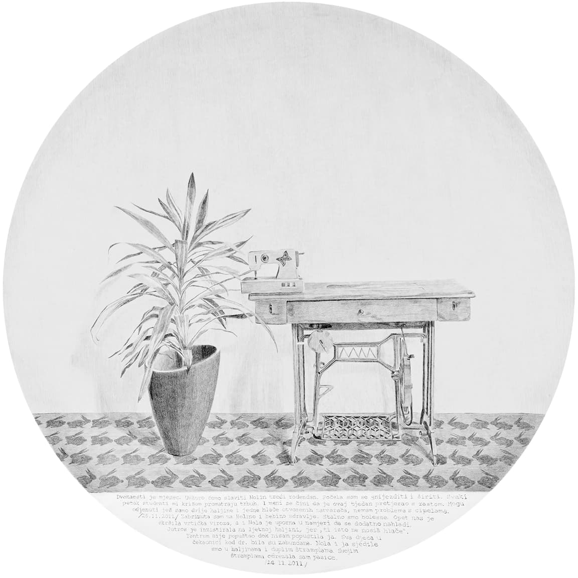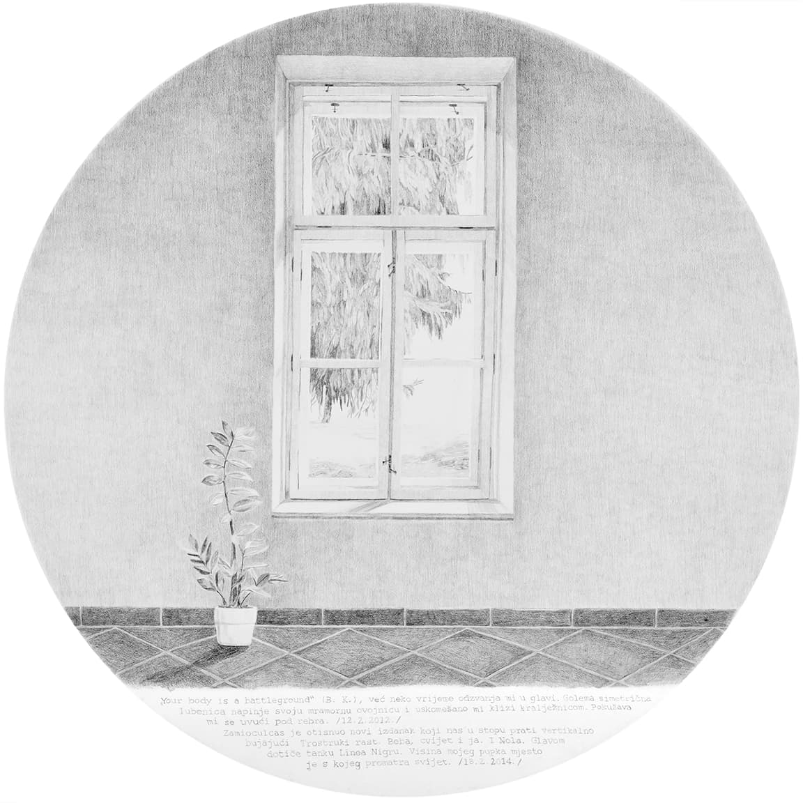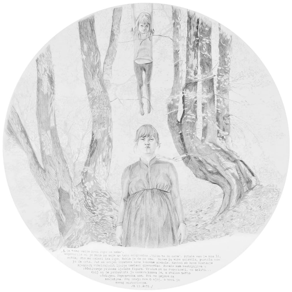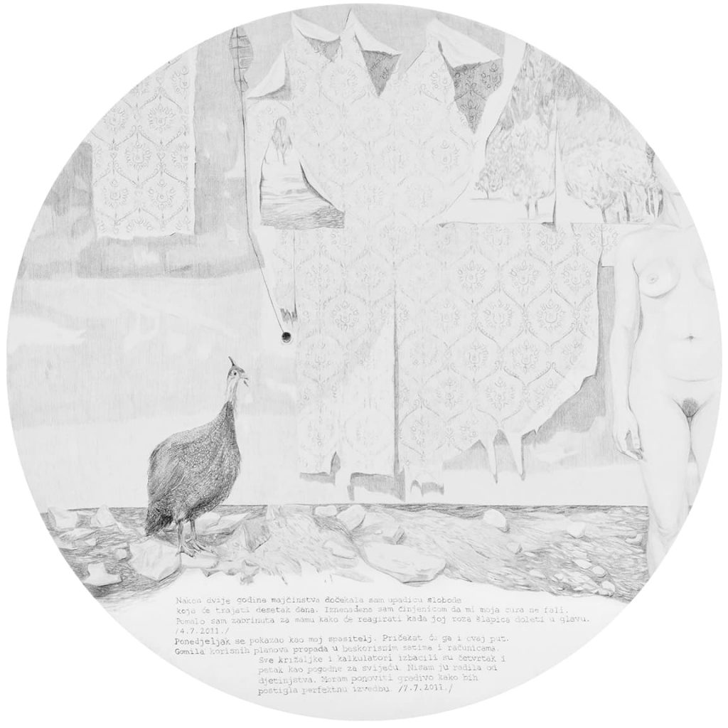 Opet možda preuzetno, čini mi se da je, koliko god svako od prethodnih izlaganja bilo precizno, temeljito, promišljeno i konačno ostvareno kao konkretna umjetnička praksa u svakom od medijskih izbora, ovaj ciklus pod nazivom Matriksijalne priče do sada vjerojatno najopsežniji i najcjelovitiji slikarski projekt u koji se ova umjetnica upustila. Čak ako ostavimo po strani činjenicu da je to dio njezine doktorske teze, a što znači da je u projekt uloženo mnogo od znanstvenih metodologija, koncept izložbe kristalno je jasan u svojoj umjetničkoj čistoći i samostalnosti. Ako samo malo i posve indiskretno zavirimo u naslove poglavlja kojima je pripremala završna i izvedbena rješenja svoje prakse, poput Osobno razumijevanje subjektivnosti majčinstva u susretu s umjetničkom praksom, Osvrt na radove Bez naziva – rad posvećen Noli i Imaginarni bestijarij, Prema Matriksijalnim pričama, Majčino mišljenje i njezino tijelo, Likovna koncepcija, Interpretacija crteža i potom nazivi devet crteža koji su sadržaj ove izložbe, jednake veličine – rundeli promjera 140 cm, u tehnici olovke na bijeloj podlozi te naziva 1. Iščekivanje, 2. Prekid, 3. Identitet, 4. Kontrola, 5. Ljubav, 6.Identifikacija 7. Oblik, 8. Ime i 9. Razdvajanje, jasno je u koliko je složen i zahtjeva projekt ušla umjetnica. Ima smisla i razloga opet se pozvati na riječi umjetnice kako bi njezine misli, u riječi, ali i slici, potvrdile svoju neupitnu jasnoću: „Kroz radove Bez naziva – rad posvećen Noli, Imaginarnom bestijariju i Matriksijalnim pričama prevladala sam prisutnost osjećaja stida da kroz vlastiti umjetnički rad subjektivno prikažem vlastito iskustvo kroz prizmu umjetnice – promatračice, u susretu s majčinstvom i trudnoćom potaknula me je na promišljanje o procesu vlastitog transformiranja kroz trudnoću i majčinstvo, a s time i o mogućnostima za transformiranje moje umjetničke prakse koja se otvorila prema istraživanju subjektivnog iskustva majčinstva koje sam izrazila u Matriksijalnim pričama. Ovaj crtački poliptih izražen je u svojevrsnoj formi grafičke novele koja svoj narativ gradi kroz sabiranje i interpretaciju sadržaja proizišlih iz sinergije proučavanja psihoanalize, dnevničkih zapisa i vizualnih komentara kroz niz figurativnih crteža.”